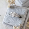 This stunning ring features a central 1 carat oval cut lab grown diamond, in a 4 prong setting, with 6 accent round brilliant cut matching lab diamonds!