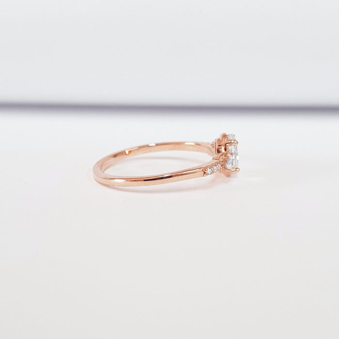 Center Moissanite: 6 x 4 mm, E colour, VVS clarity