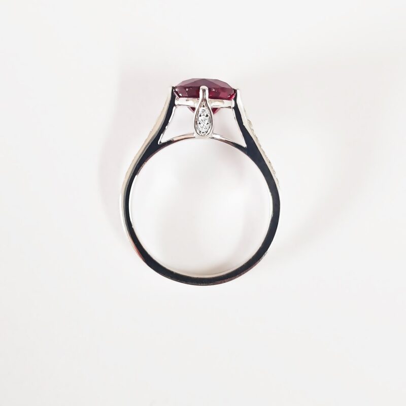 Center Lab grown ruby: 9 x 7 mm, 2 carats, AAAA quality