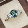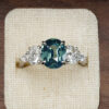 Centre Sapphire: 3.04ct, 9.52×7.90×4.77mm, oval cut, green-blue, VS clarity, certified unheated