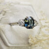 Center Sapphire: 3.01ct, oval cut, VS clarity, green-blue, 9.37×7.6×4.49mm, certified unheated