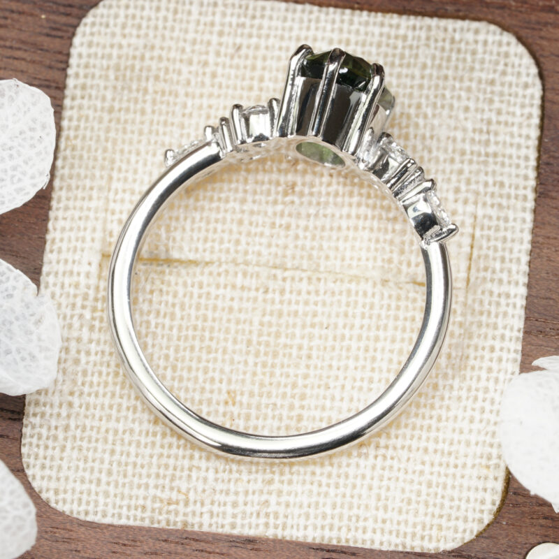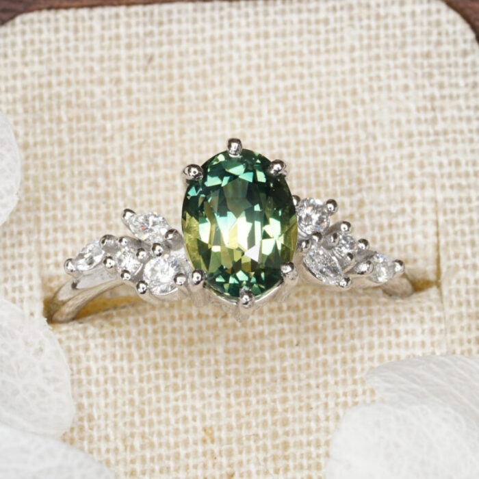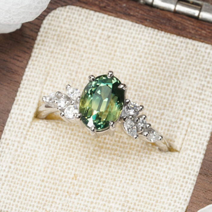 Central Sapphire: 2.57ct, oval cut, 8.9×6.4×5.4mm, VS clarity, green-blue-yellow