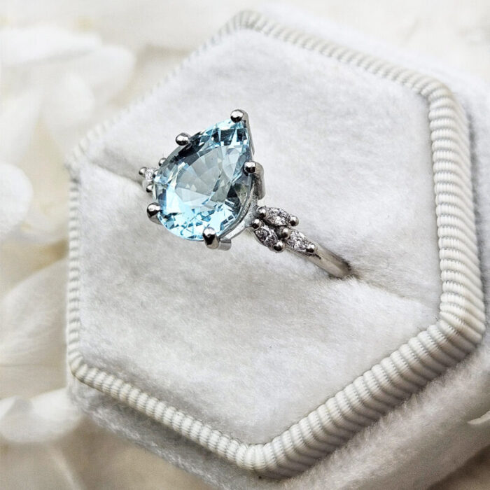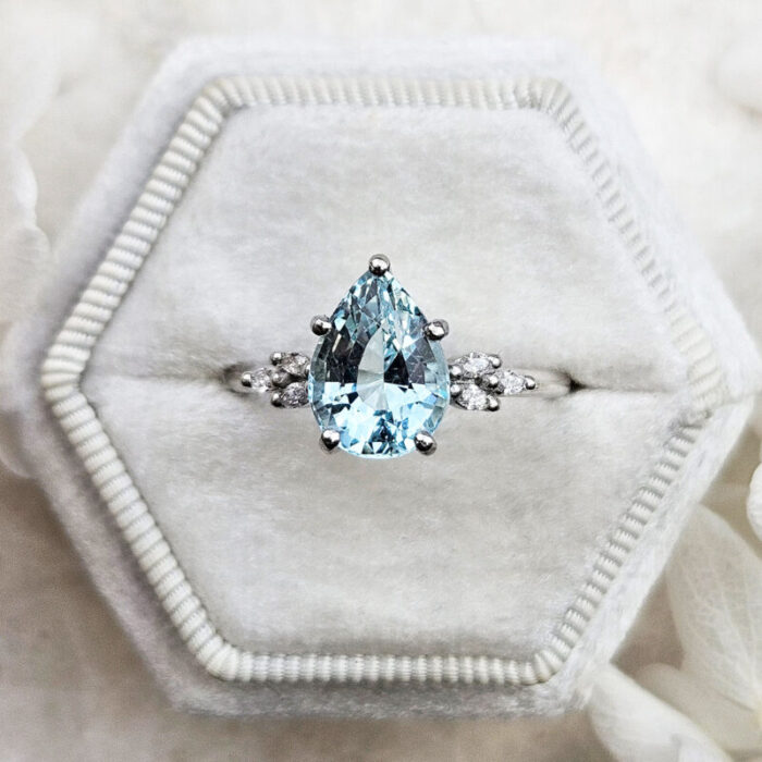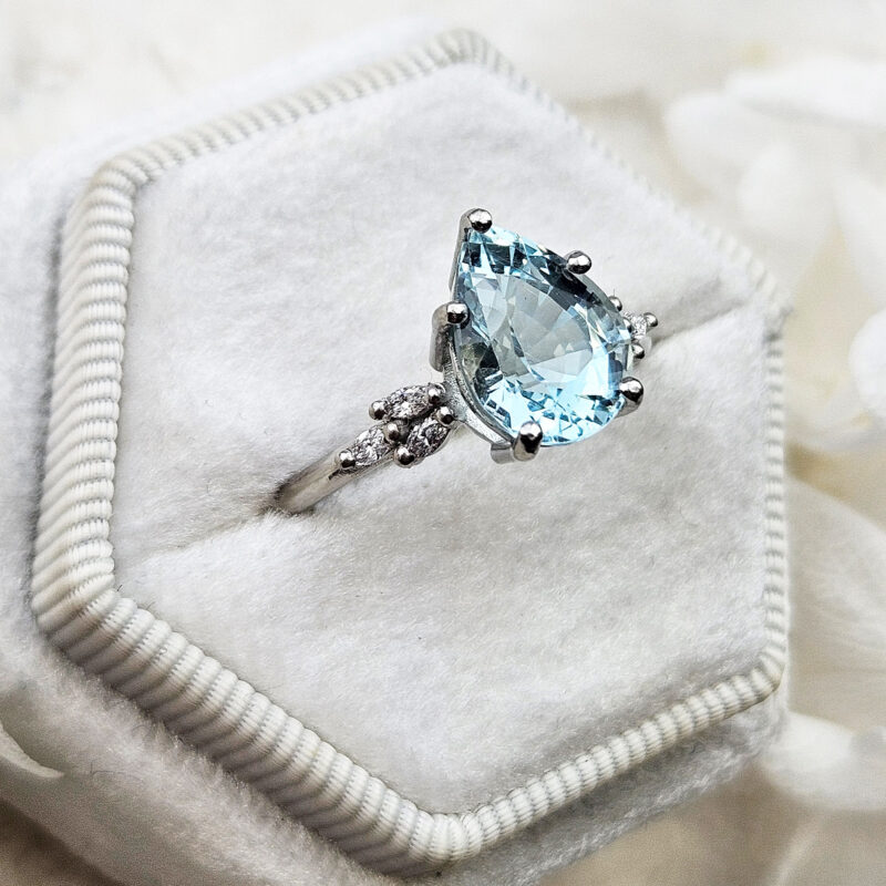 Centre Aquamarine: 2.75ct, pear cut, 11.8×8.8×5.8mm, VS clarity