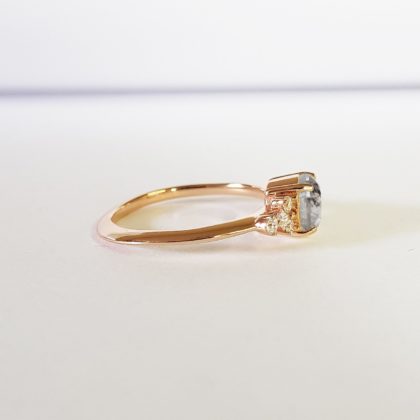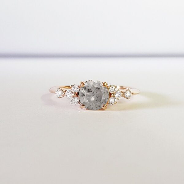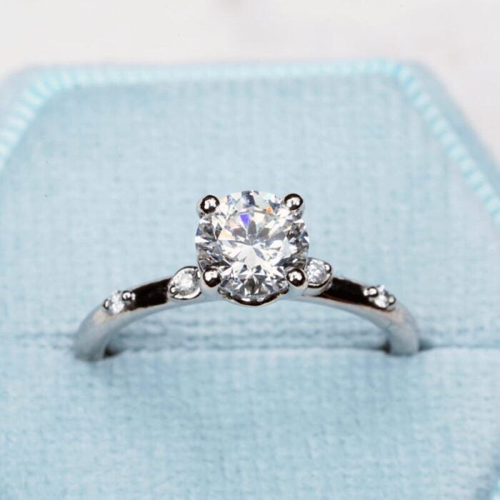 Centre lab grown diamond: 1ct, round brilliant cut, E colour, VS1 clarity, IGI certified (this is the minimum size and quality, if the diamond is sourced at a higher size/quality then no extra charge will be added)