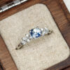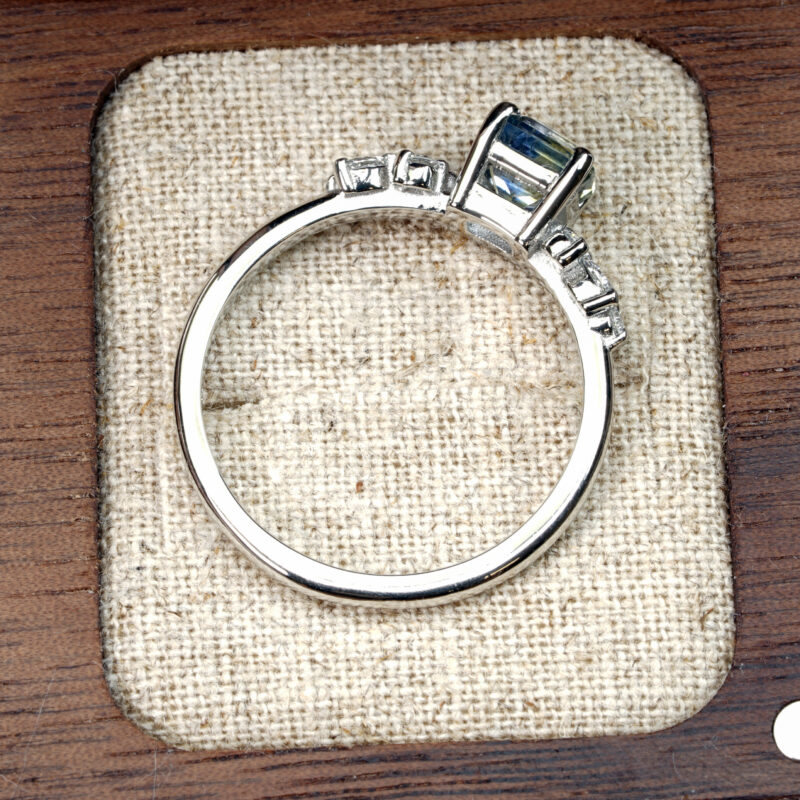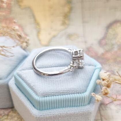 Centre Sapphire: 1.30ct, radiant cut, 5.7×5.3×4.5mm, Si clarity, light blue