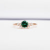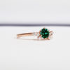 This brand new stunning ring features a central brilliant cut treal green moissanite, that has been claw set with 6 brilliant cut diamonds, in a sleek and elegant low profile mount.