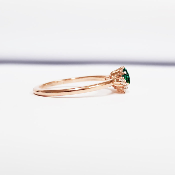 Teal green moissanite and diamond unique engagement ring in white/yellow/rose gold or platinum handmade