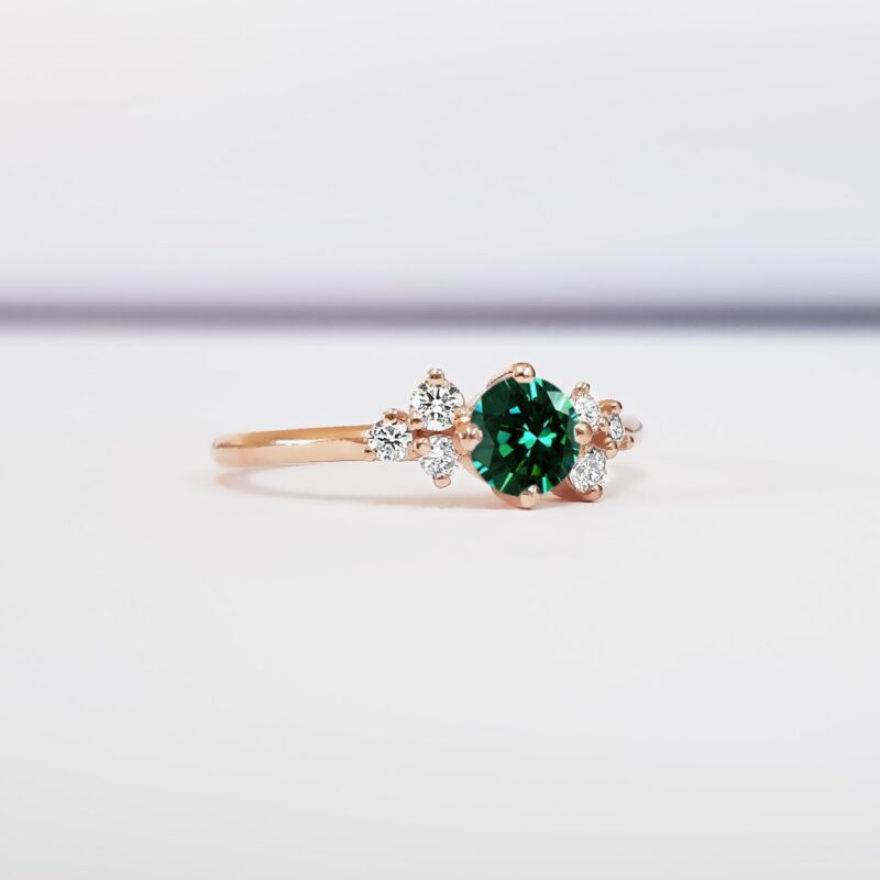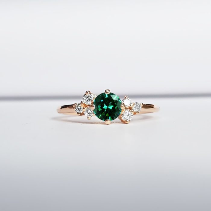 Center Teal moissanite: 5 mm diameter, 0.5 carats,