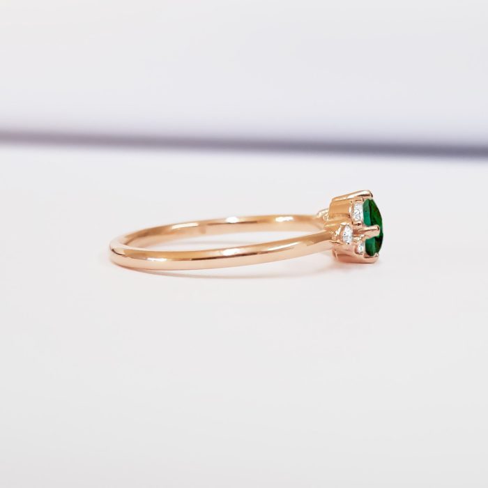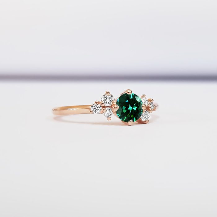 This brand new stunning ring features a central brilliant cut Teal Moissanite, that has been claw set with 6 brilliant cut diamonds, in a sleek and elegant low profile mount.