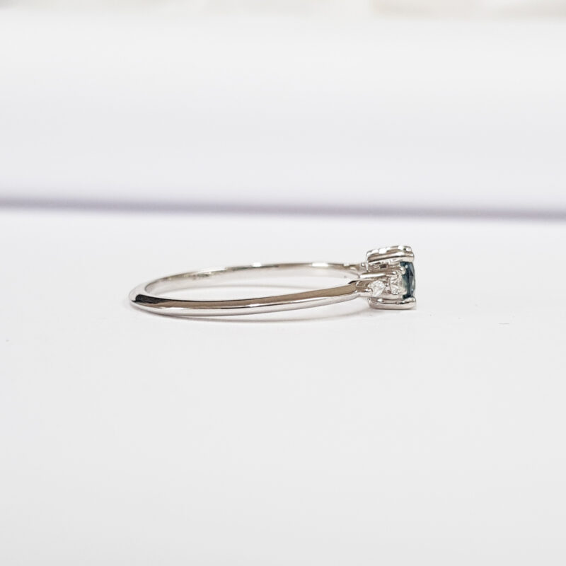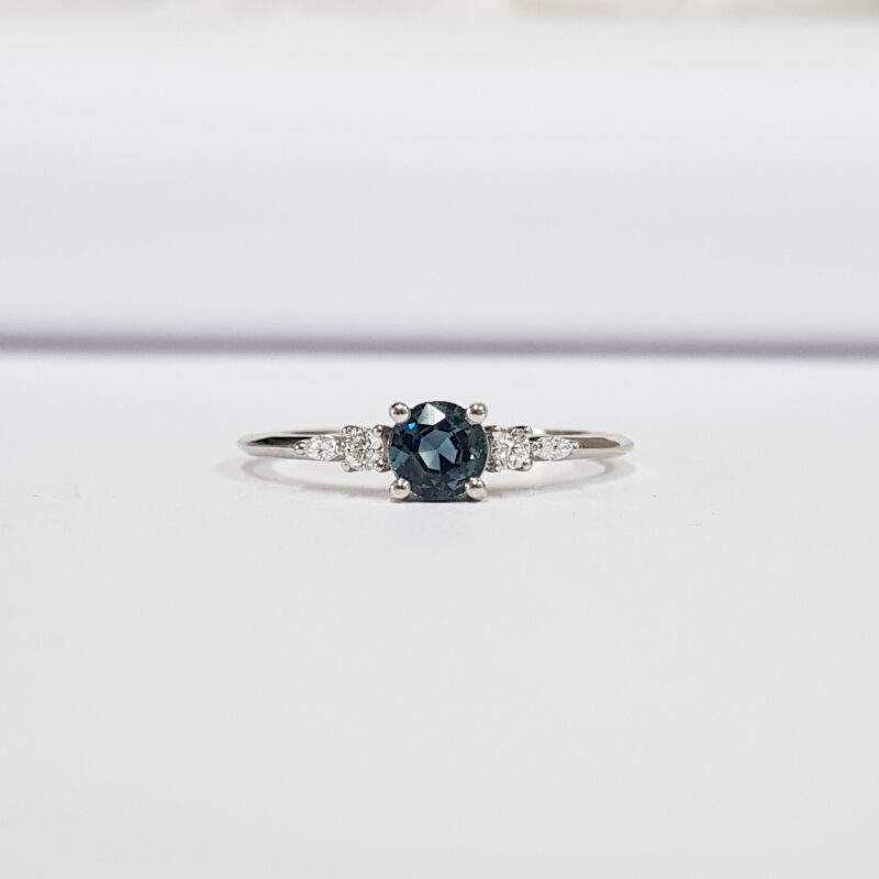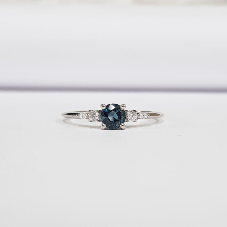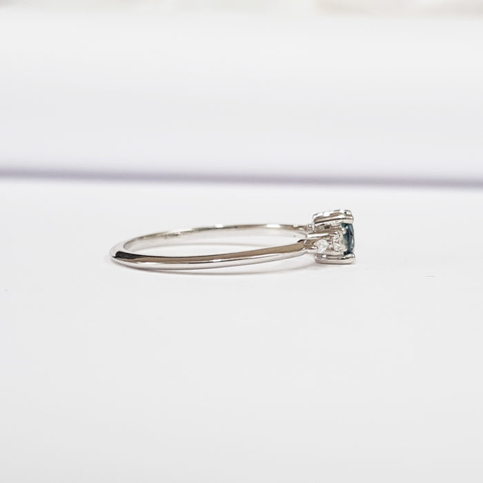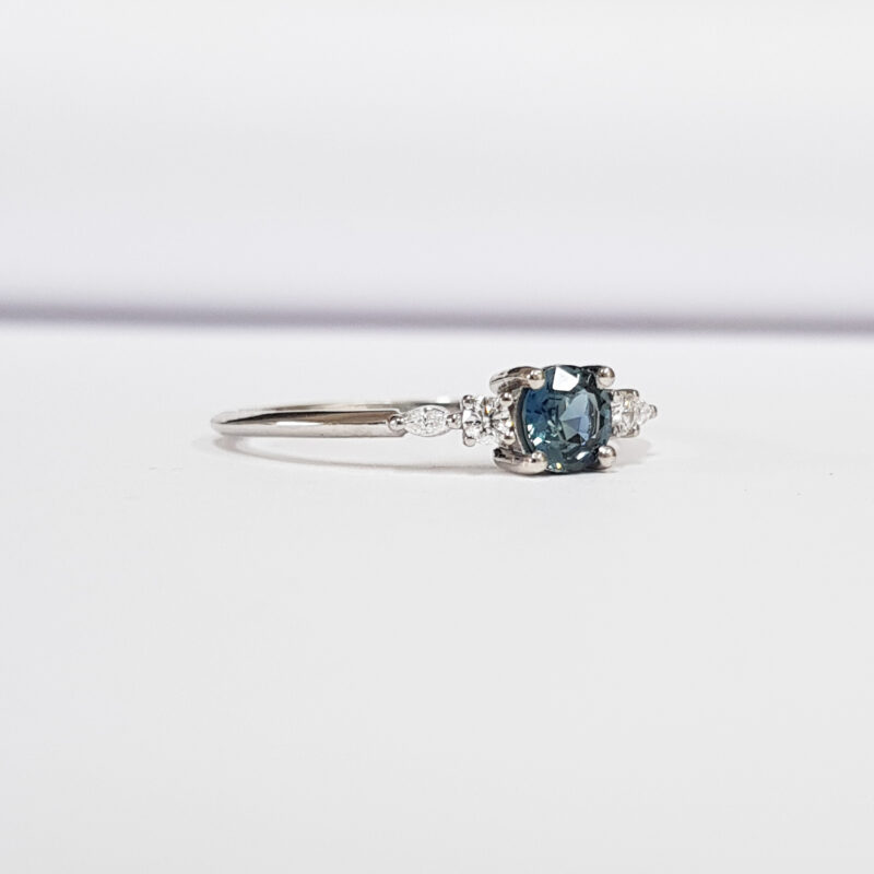 Center teal Sapphire: 0.5 carats, 5 mm diameter