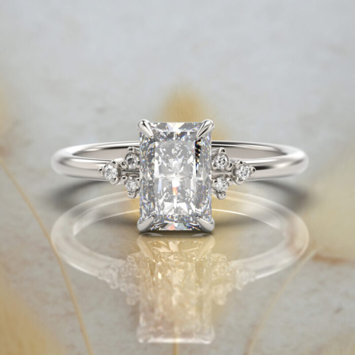 Central lab grown diamond: 2ct, radiant cut, E colour, VS1 clarity, IGI certification (this is the minimum size and quality, if the diamond is sourced at a higher size/quality then no extra charge will be added)